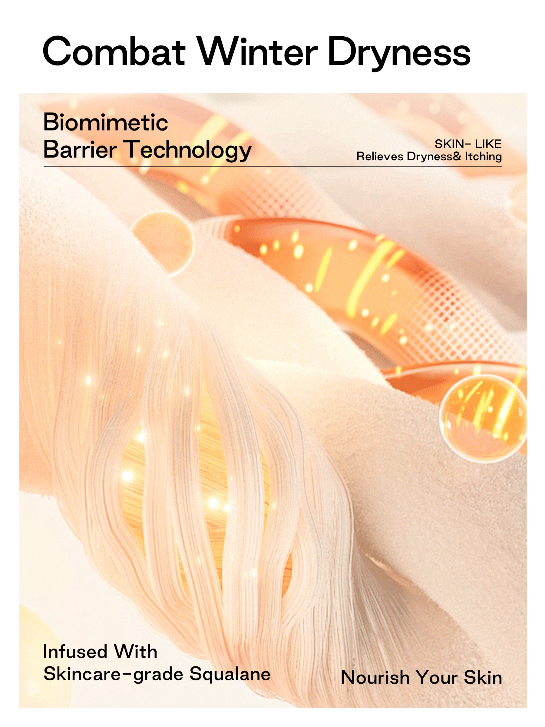 - Heat-Generating + Warm-Locking Tech (Recommended for 25℉–60℉): Infused with ginger fibers that naturally promote microcirculation. Average temperature rise of +5.4 °F in 10 minutes (up to +14.8 °F). Far-infrared emissivity ≥0.92 (national standard ≥0.87)